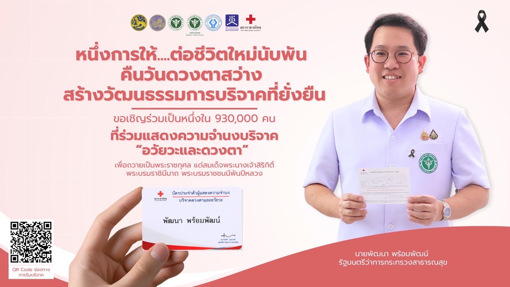 ขอเชิญร่วมเป็นหนึ่งใน 930,000 คน ที่ร่วมแสดงความจำนงบริจาค “อวัยวะและดวงตา” เพื่อถวายเป็นพระราชกุศล แด่สมเด็จพระนางเจ้าสิริกิติ์ พระบรมราชินีนาถ พระบรมราชชนนีพันปีหลวง