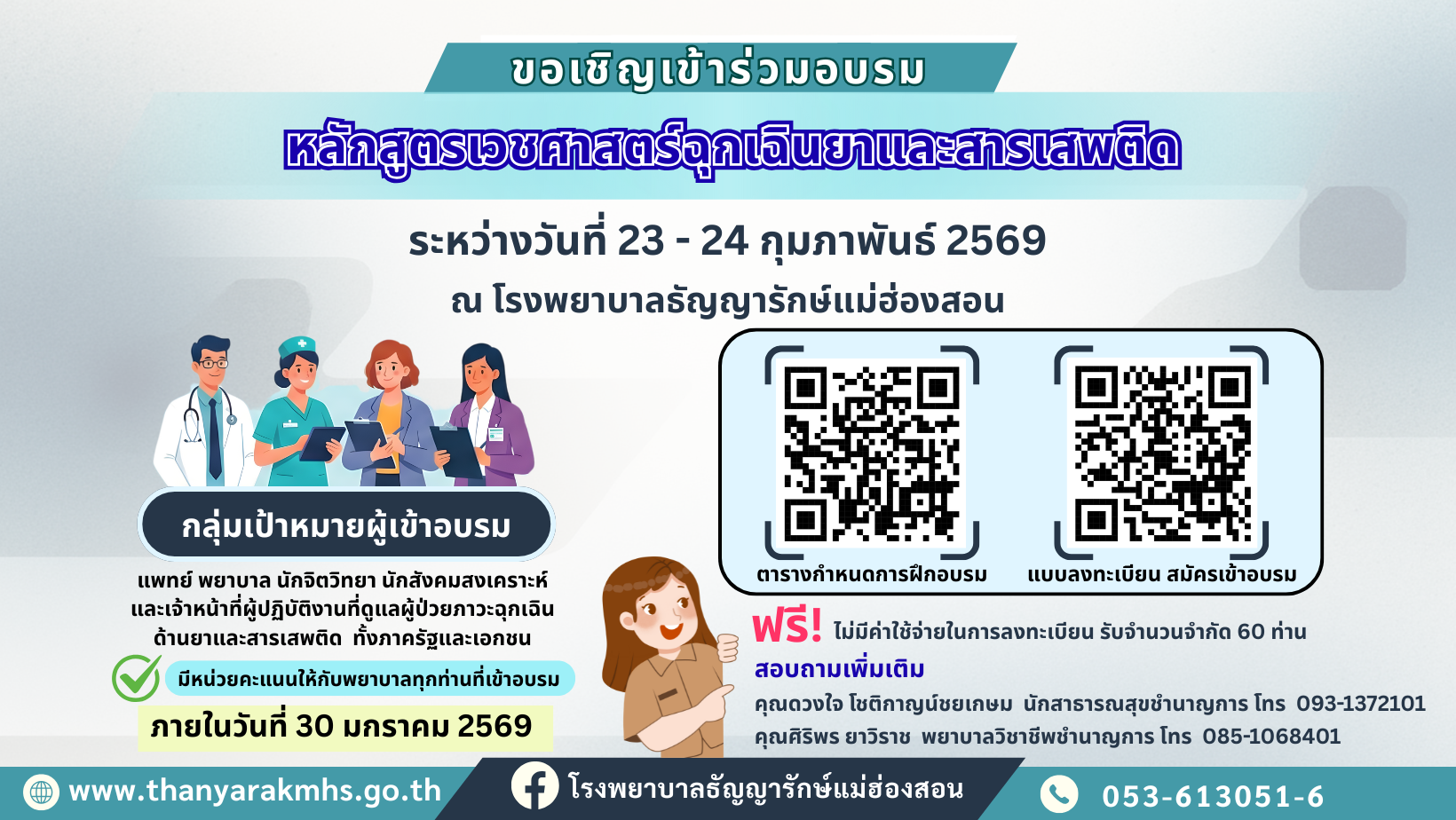 เชิญชวนเข้าร่วมอบรมหลักสูตร: เวชศาสตร์ฉุกเฉินยาและสารเสพติด
