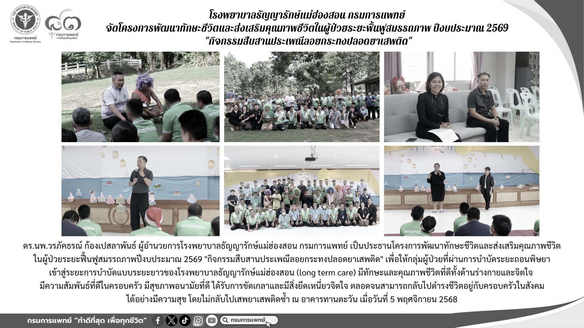 เจ้าหน้าที่ร่วมจัดนิทรรศการให้ความรู้เรื่องยาและสารเสพติด เพื่อสร้างเสริมภูมิคุ้มกันทางด้านจิตใจในกลุ่มเยาวชนไม่ให้ยุ่งเกี่ยวกับยาเสพติด ภายใต้กิจกรรม “เยาวชนรุ่นใหม่ ห่างไกลยาเสพติด สามัคคี ดี เก่ง” โครงการพระราชดำริด้านสาธารณสุข ตามกิจกรรมการรณรงค์และป้องกันปัญหายาเสพติด TO BE NUMBER ONE